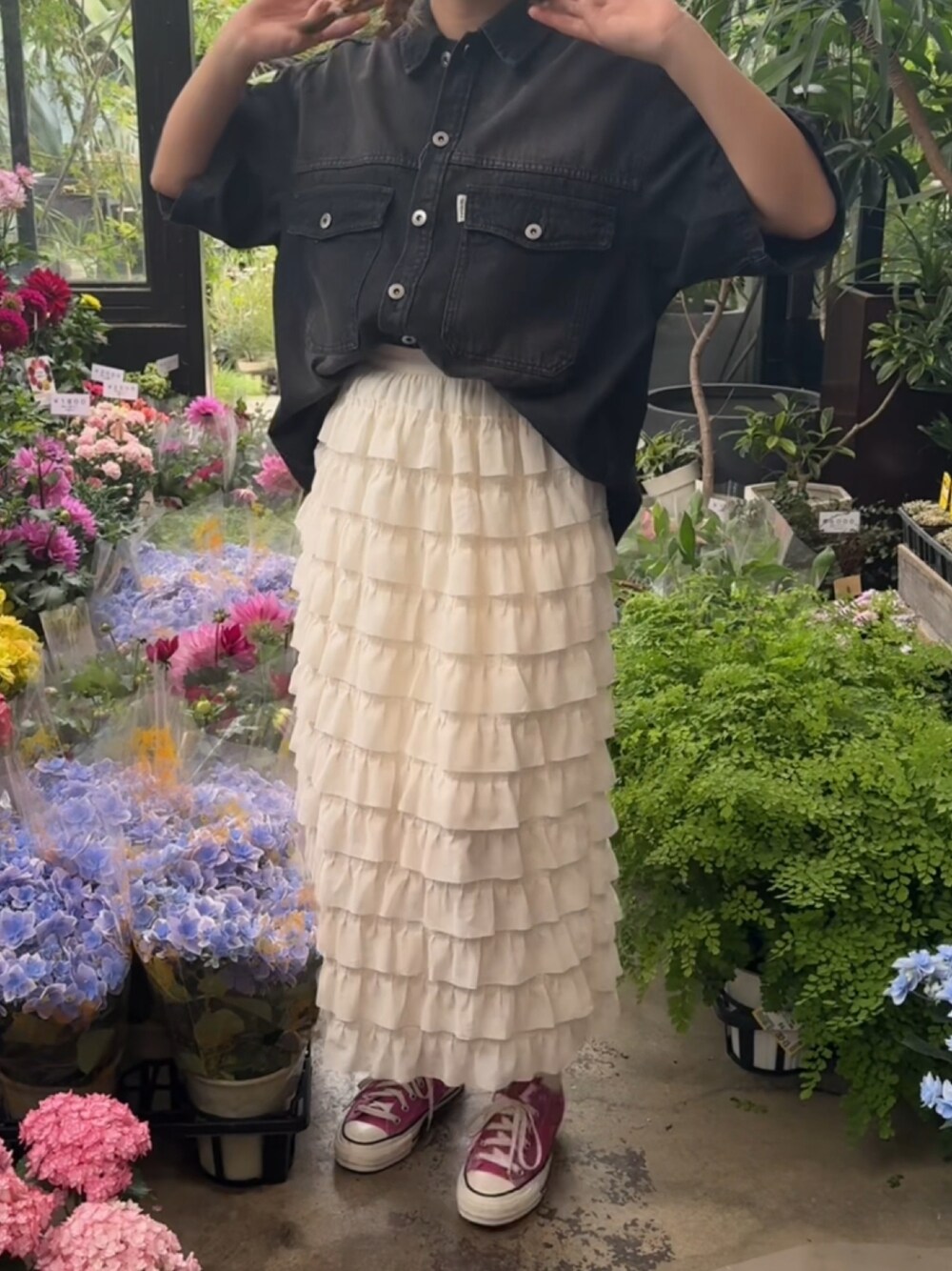 甘くなりすぎないようにトップスをデニムにしました💐🫶🏻