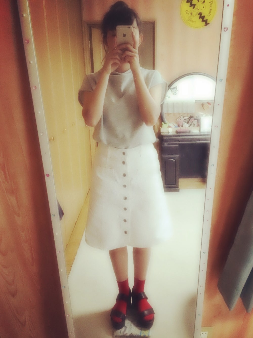 ひなのデニムスカート「前開き台形デニムスカート」を使ったコーディネート