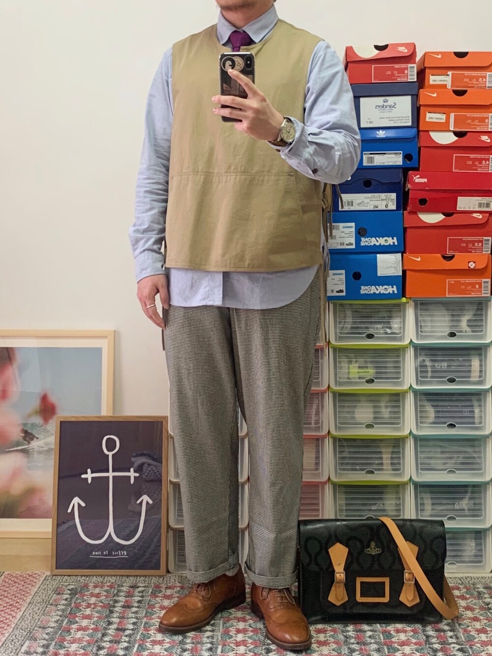 春日混搭🍃... 领带: BROOKS BROTHERS 包袋: VIVIENNE WESTWOOD 马甲: DUBLIN 衬衫: PRAGMATY 裤子: PRAGMATY 鞋子: BRAUN NUFFEL