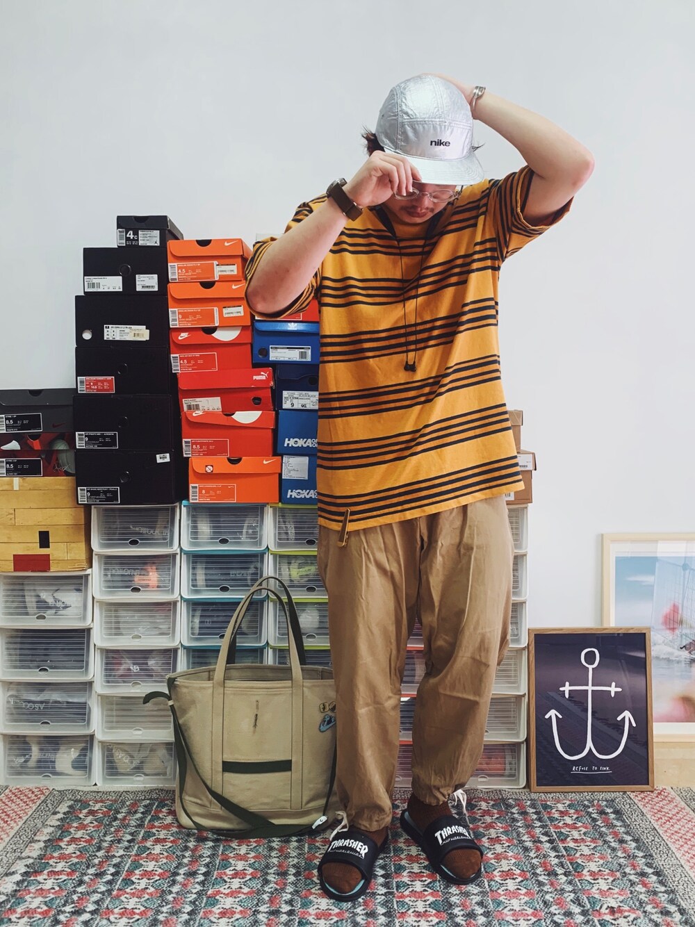 初夏穿搭🌻... 包袋: PRAGMATY 短袖:  UNIQLO 裤子: PRAGMATY 跑鞋:  THRASHER x HUF