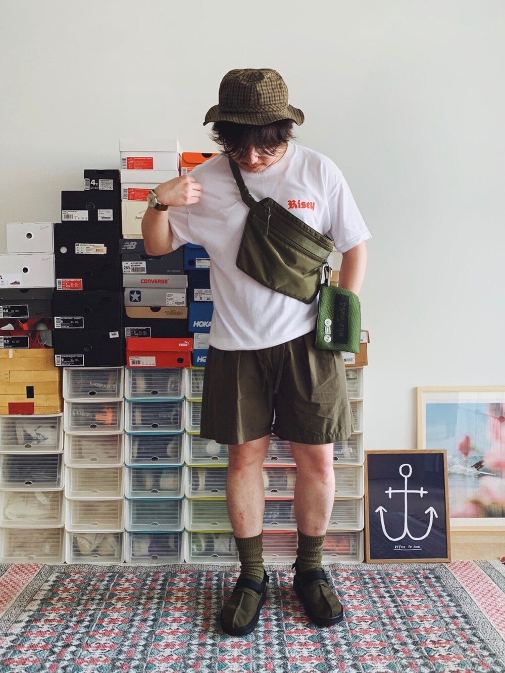 5.27 初夏穿搭🌻... 军绿主题穿搭,色系选择色度接近的单品,白色短Tee过渡衔接整套穿搭。 聊聊近期喜爱的两款单品,DANTON奔尼帽和Reebok Beatnik。 经典格纹奔尼帽,偏棕的格纹实物颜色很好搭配,轻盈透气的面料,穿戴舒适夏日首选。 Reebok Beatnik 2019复刻,实物还是比较惊喜,好穿好搭配,只是做工有欠佳,硬要和日系品牌凉鞋比较的话还是有差距,整体性价比和穿搭呈现还是不错的。 包袋: UNIQLO,WILD THINGS 帽子: DANTON 短袖: RISEY 裤子: PRAGMATY 长袜: Anonymous ism 鞋子: Reebok Beatnik