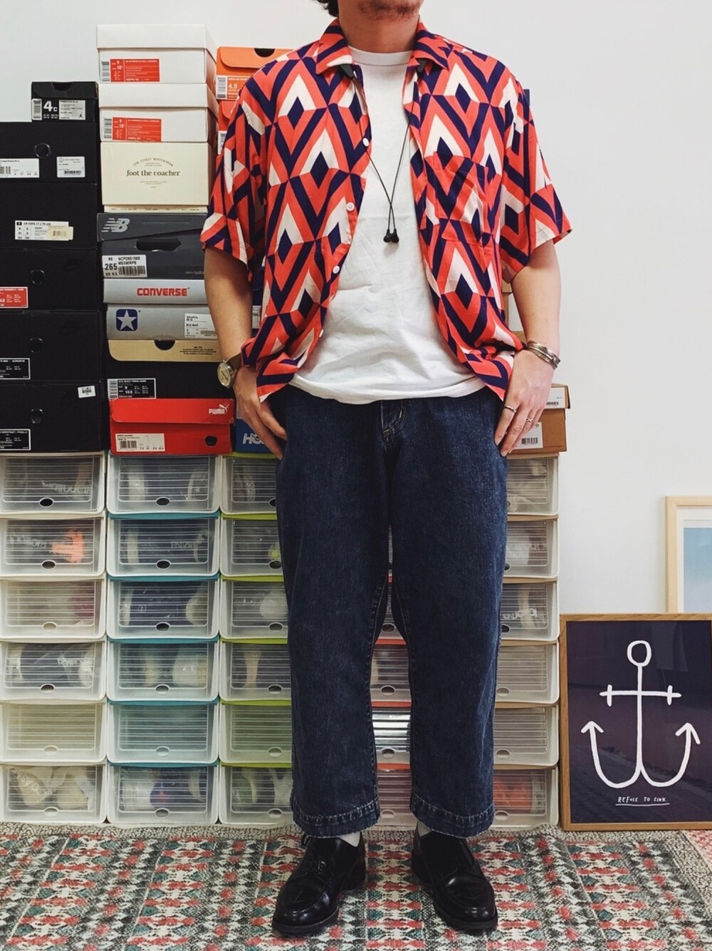 5.29 初夏穿搭🌻... 夏日穿搭,夏威夷衬衫一定是热门单品。 轻复古穿搭,内搭选择白Tee搭配宽松九分牛仔裤,鞋款选择sanders的军事线款搭配米白色长袜,轻松简单的夏日呈现。 衬衫: J.S HOMESTEAD 内搭: PRAGMATY 裤子: PRAGMATY 鞋子: SANDERS