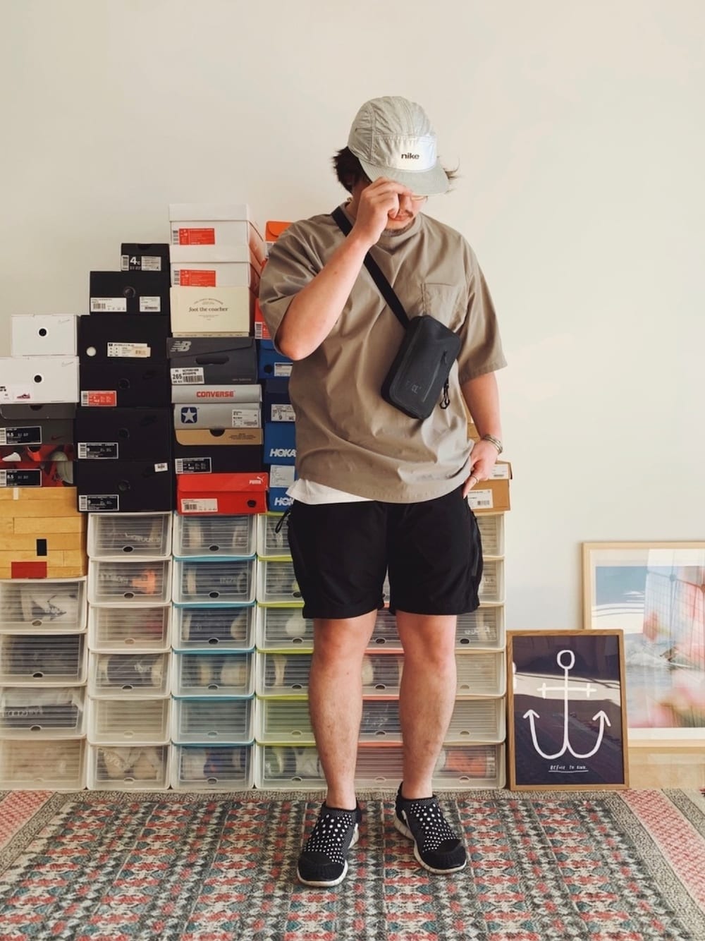 6.14 夏日穿搭🌻... Orbit 2 [Polka Dot]为2014年推出,至今看来仍极具未来感,黑色波点也很好搭配,一身全黑就可以很有味道。 选择户外穿搭,灰色便携收纳短袖搭配功能型多袋短裤,整体色调黑白灰不出挑。 细节上,选择F/CE.小包和NIKE AW84五片帽,原因也是因为视觉呈现有未来感,整体算是为Orbit 2搭配的一套日常穿搭。 帽子: NIKE AW84 [Mars Landing] 包袋: F/CE. 短袖: RELUME 内搭: PRAGMATY 短裤: PRAGMATY 球鞋: NIKE EREE ORBIT 2 SP [Polka Dot]