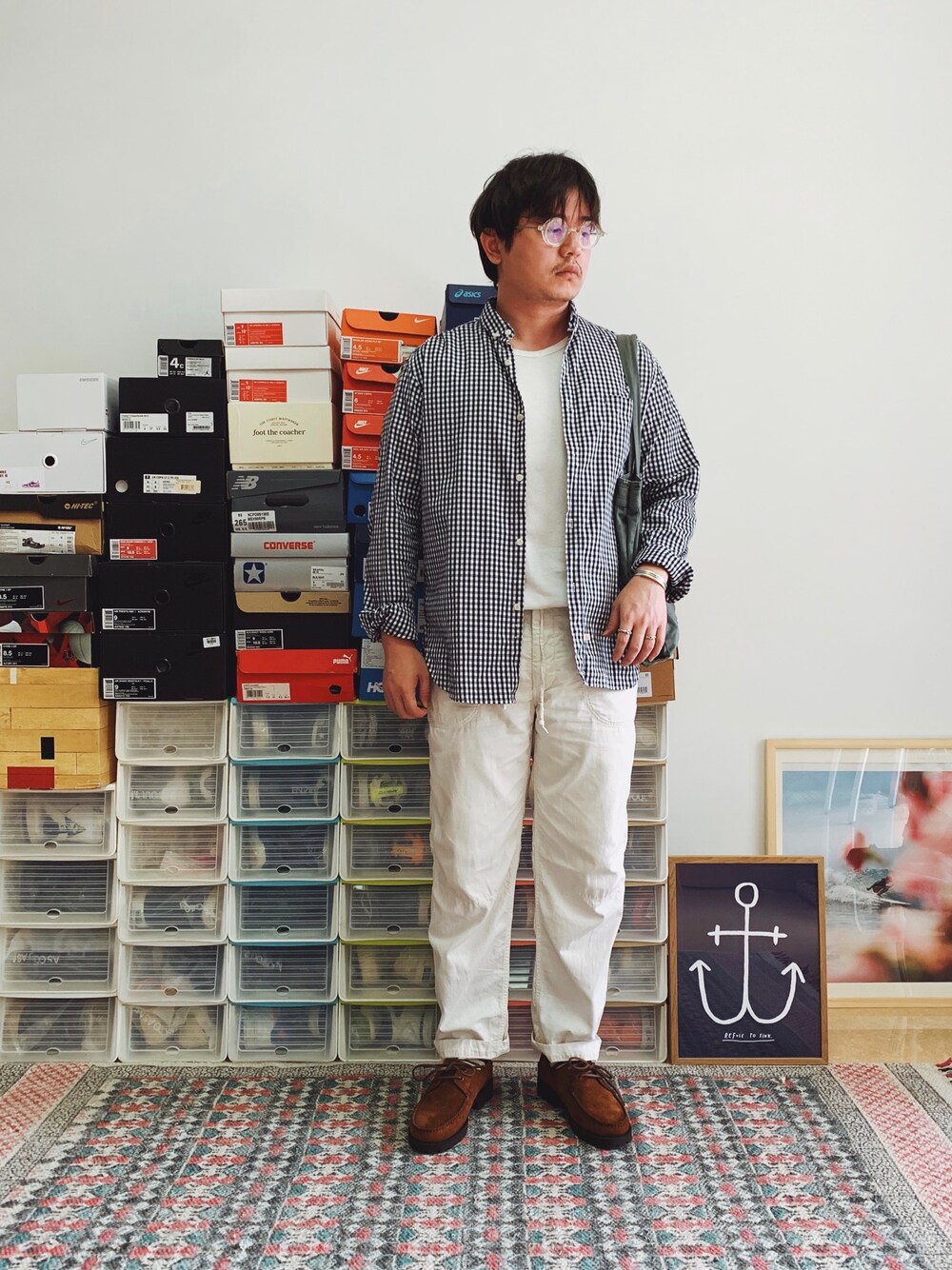 9.3 秋凉穿搭🍁 包袋: ZUCCA TRAVAIL 短袖: NIGEL CABOURN 衬衫: PRAGMATY 裤子: OMNIGOD 鞋子: Paraboot