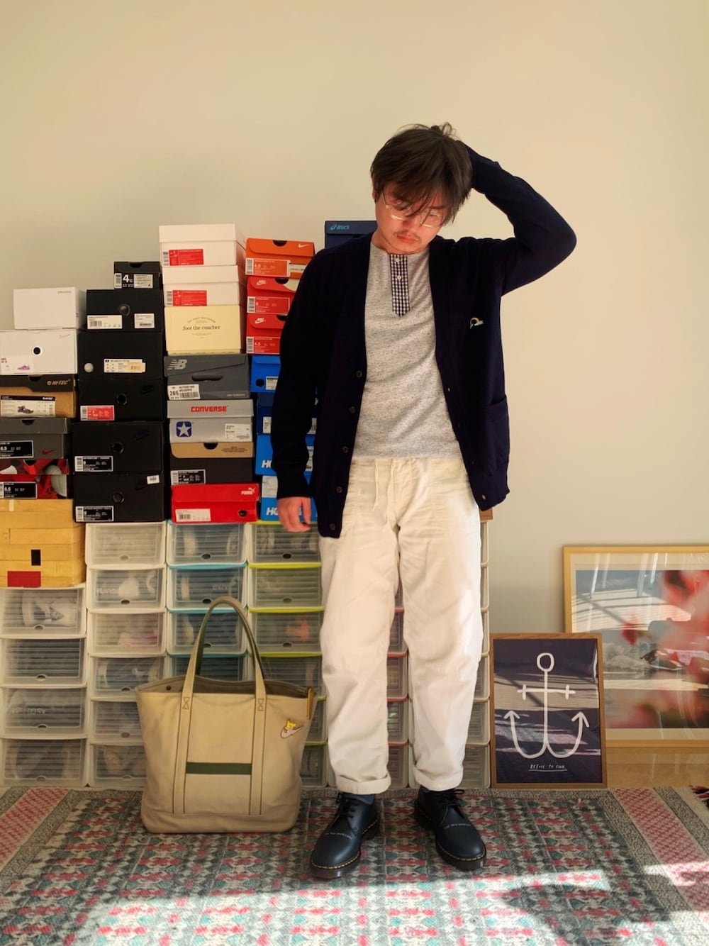 9.20 秋日穿搭🍂 开衫: PRAGMATY 内搭: PRAGMATY 裤子: OMNIGOD 皮靴: Dr.Martens x Undercover