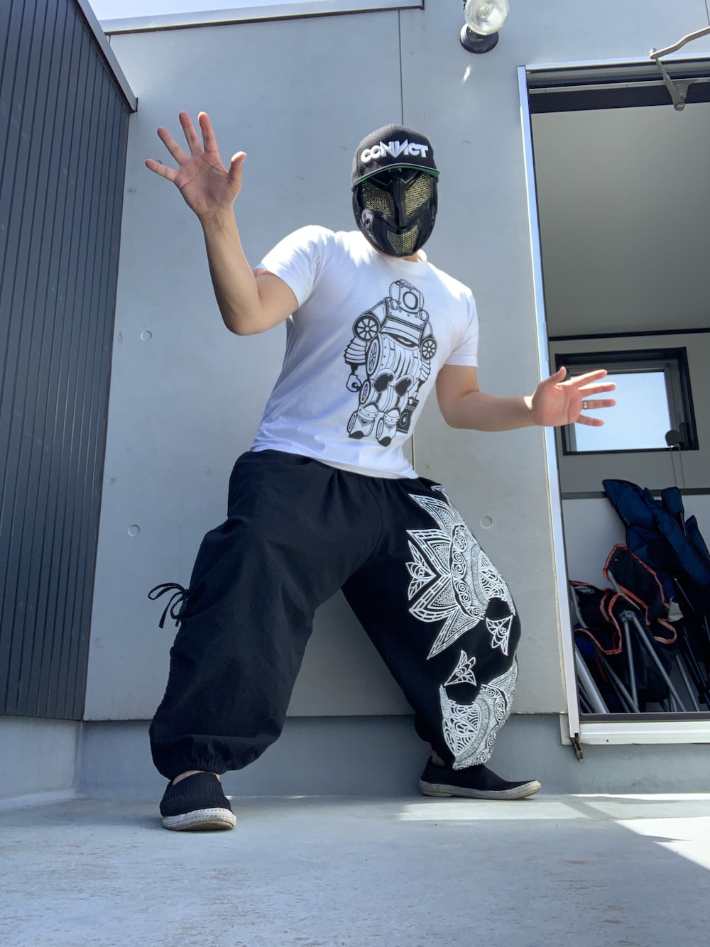 モノトーンコーデです。 やっぱりモノトーンって、非常に合わせ易くまとまりが良いです。 Tシャツは、確かYOHの瞑想期に出たよく分からない宇宙?ロボ?のモノ。 よく分からないけどカッコいいので買った一品です。 そこにアジアンファッションのチャイハネのパンツ合わせ。 非常に着心地肌触りが良いので、この時期活躍しそうです。