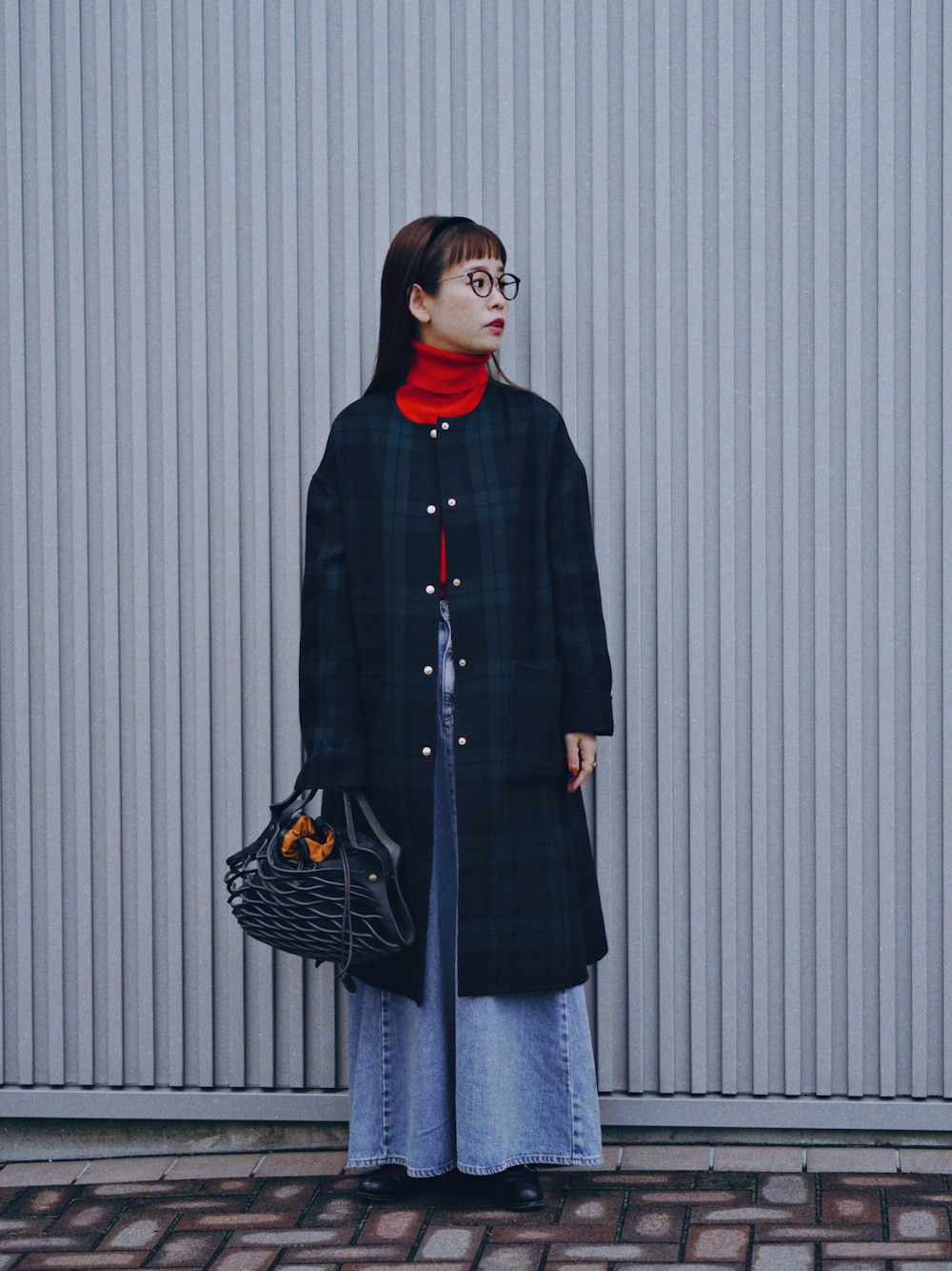 yukiのノーカラーコート「ウールダブルクロスノーカラーコート」を使ったコーディネート