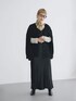Autumn LOOK🍂 BLACK! サテンキャミワンピに肩がけ風カーディガンで抜け感と奥行きが出て良きです🥸。シアートップスが透けて重くならず、スカーフで顔まわり華やか&首もとあったか☃️