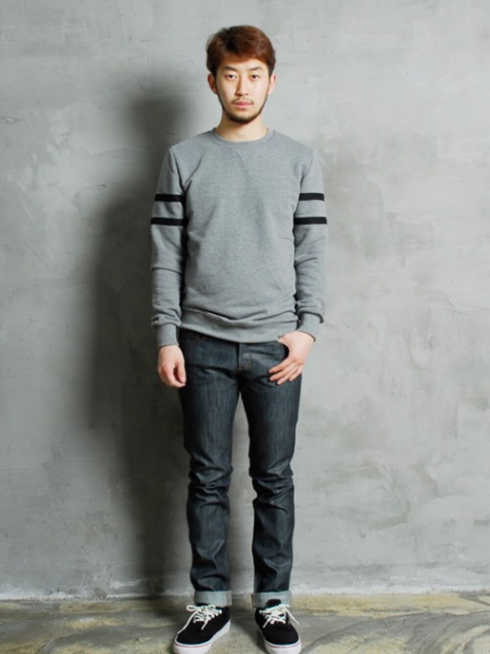 TOP: XERO - Sweatshirt RUGBY Gray PANTS: XERO - 12oz Raw Denim Coated Indigo