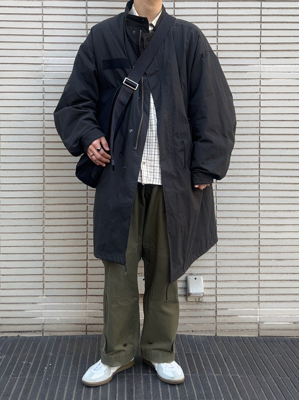 ライナーを着脱して長く活躍するモッズコートを主役にしたスタイリングです。 Barbourのチェックシャツとカーゴパンツ、ジャーマントレーナーで色味を緑白で統一してます! ミリタリー要素と相性の良い色合わせがお気に入りです。
