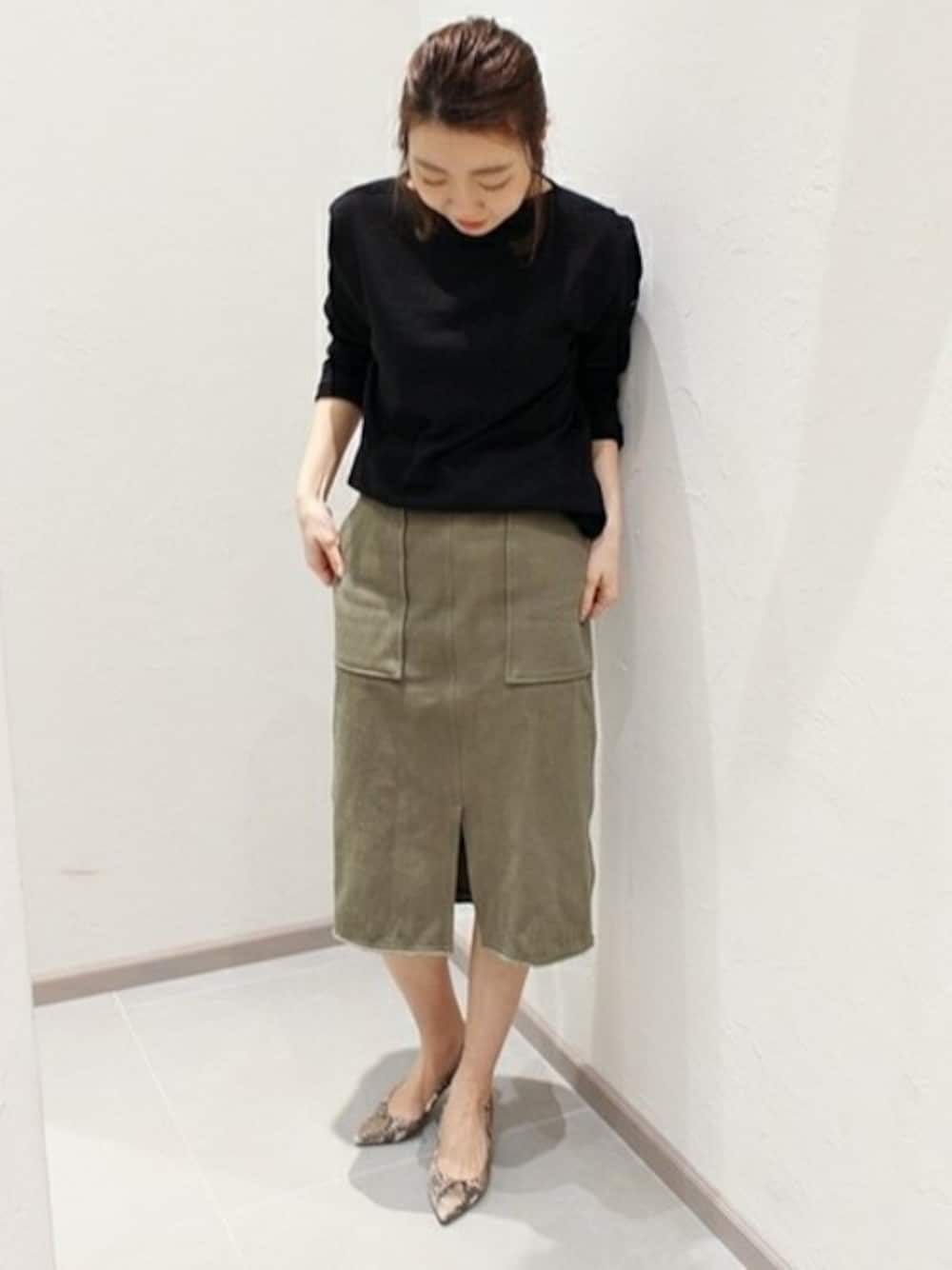 大きなポケットがアクセント。前スリットは定番人気のシルエットのスカートです。