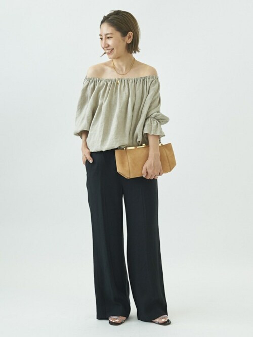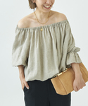 【ヴィンテージオフショルダーブラウス】 身長:156cm/体型:細身/普段サイズ:S、M/着用サイズ:FREE/イエベ秋/ウェーブ サイズ感:ゆとりのあるサイズ感です。 素材感:ヘンプ素材ですが、しっとり感があり優しい肌当たりです。 着心地:肩だししても上品にまとめてくれるアイテムです。