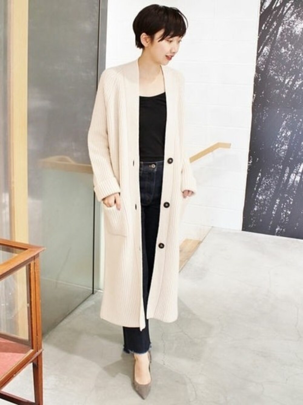 ロング丈がグッドバランス ポケットでさりげない可愛さをアピール。モノトーンで大人っぽく着こなして。