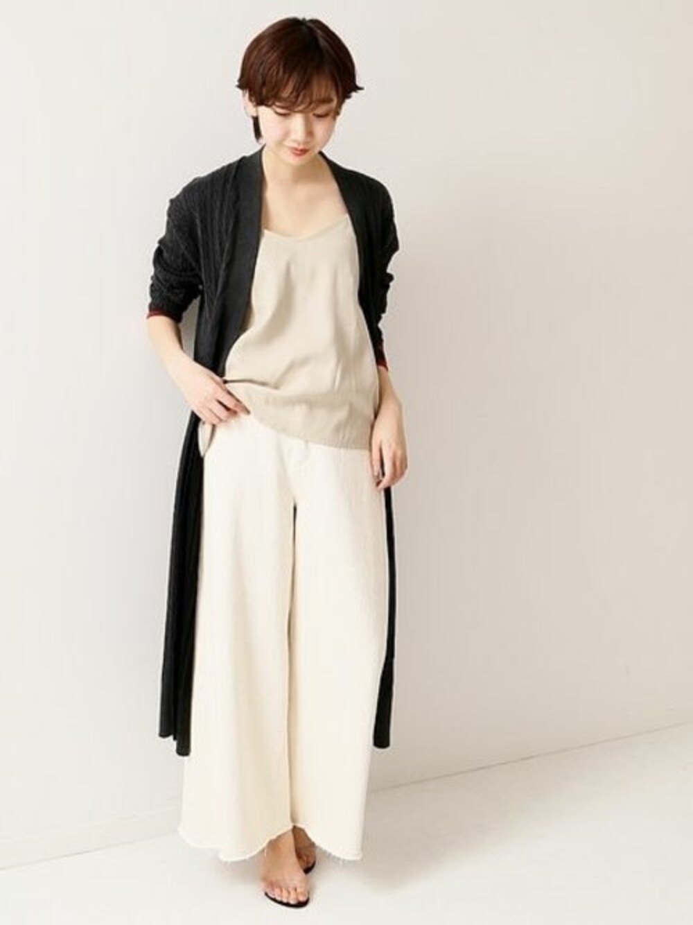 スポーティなラインがポイント 袖に入ったラインがスポーツテイストでトレンドライクなカーディガン。 ロングなレングスがこなれ感たっぷりな着こなしに。