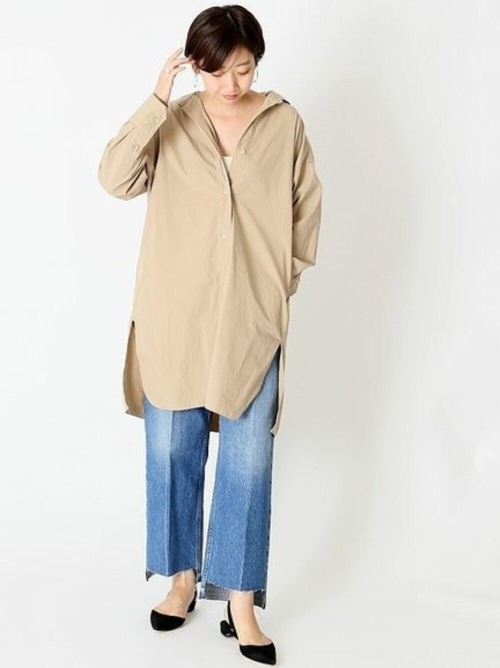 オーバーサイズ感がコーデのポイント オーバーなシルエットが、ラフ感もあり大人な雰囲気漂います。ワイドデニムと合わせて抜け感のあるスタイルがおススメ。