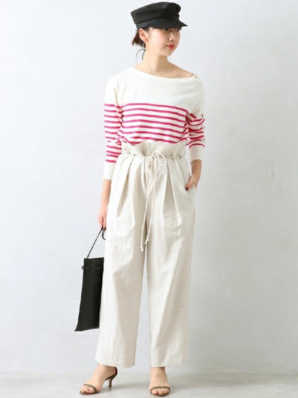 marinaのニット/セーター「ボーダーカタボタンプルオーバー◆」を使ったコーディネート
