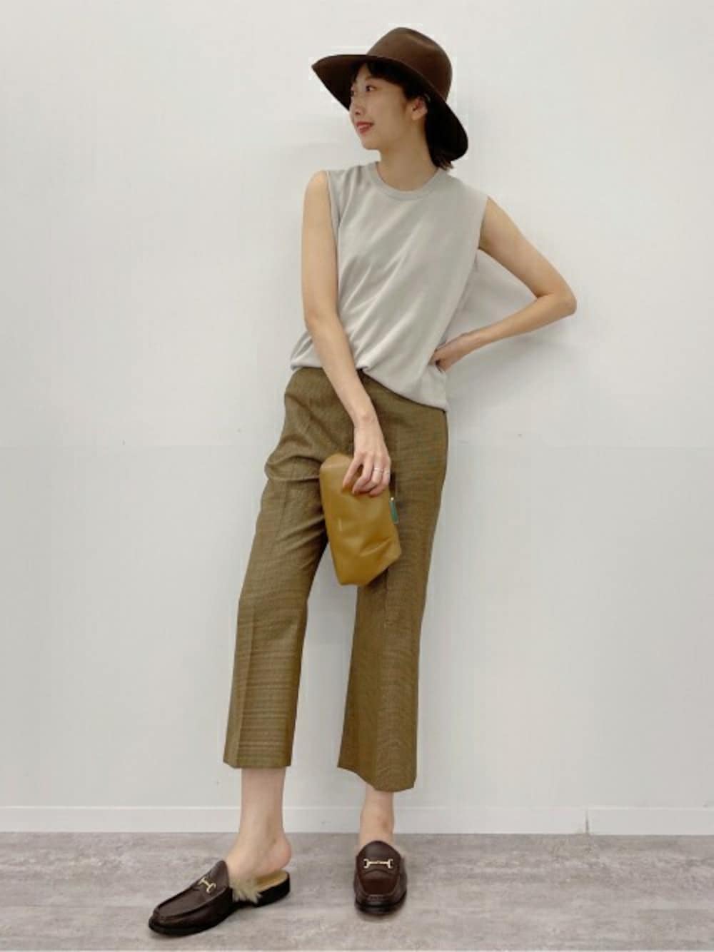 【TRADクロップドパンツ】 身長:167cm/体型:普通/普段サイズ:38/着用サイズ:38/ブルべ冬 サイズ感:少しフィット感のあるサイズ感です。 素材感:ウールですがサラッとした素材感です。 着心地:肌に纏わりつかないのでストレスなく着れます。