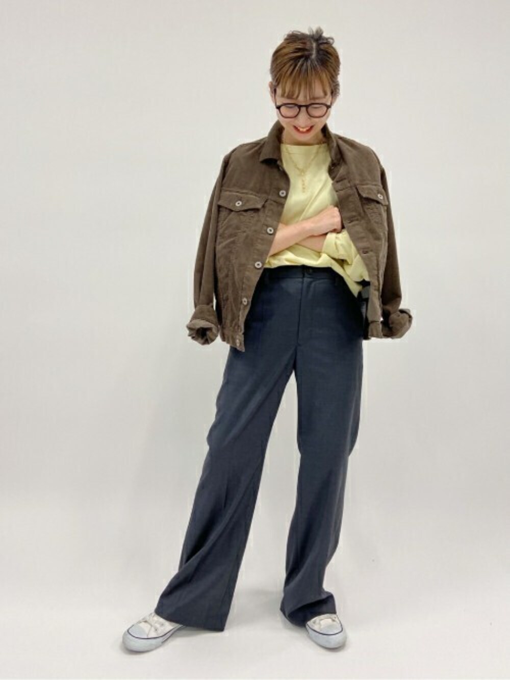 【コーデュロイジャケット】 身長:167cm/体型:普通/普段サイズ:38/着用サイズ:38/ブルべ冬 サイズ感:程よいゆとりがあります。 素材感:コーデュロイの凹凸感がコーディネートのポイントになります。 着心地:軽くてレイヤードも楽しめそうです!
