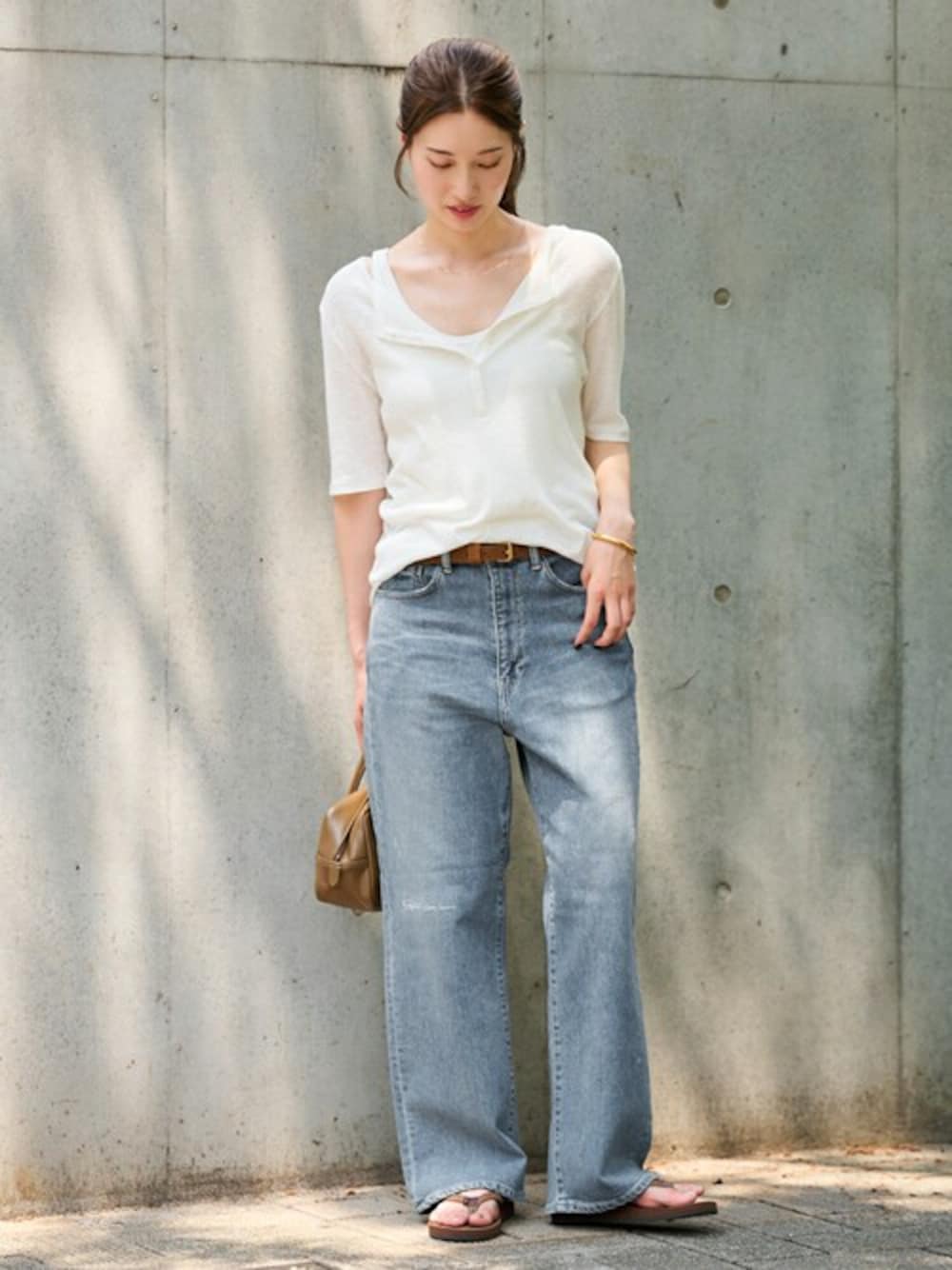 minami(FRAMeWORK 本社)のTシャツ/カットソー「スラブシアーテレコヘンリーS/S-Tee」を使ったコーディネート