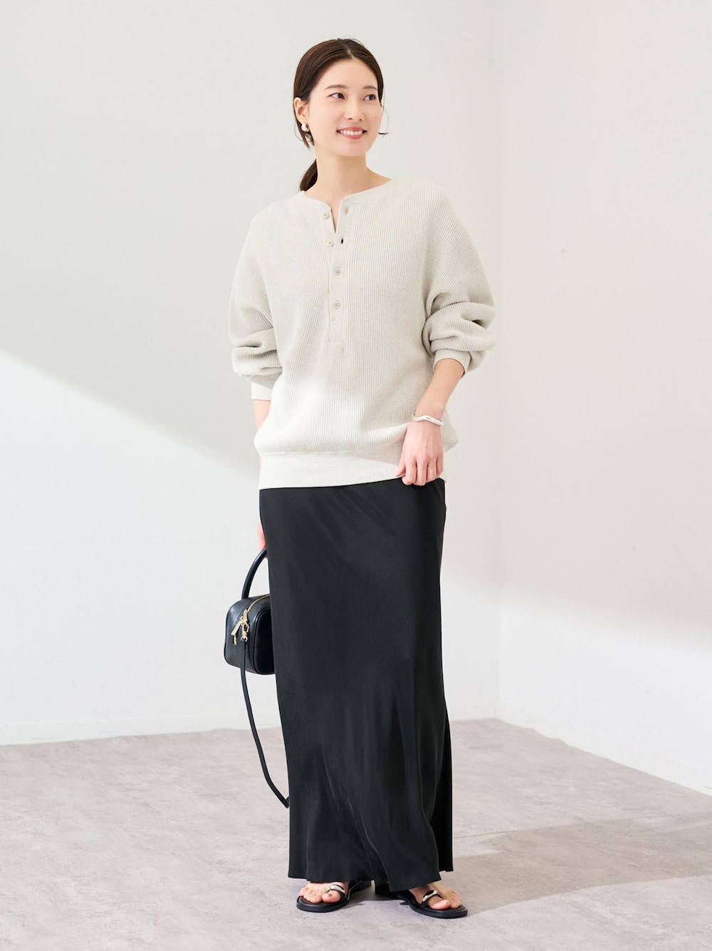 身長:165cm/体型:普通/普段サイズ:36・38 軽やかな抜け感を演出するサテンスカート。 バイアス裁ちにすることで生地に落ち感が出て、自然なマーメイドシルエットになるのがポイント。 カジュアルなスウェットやニット合わせを、女性らしくまとめてくれるアイテムです。