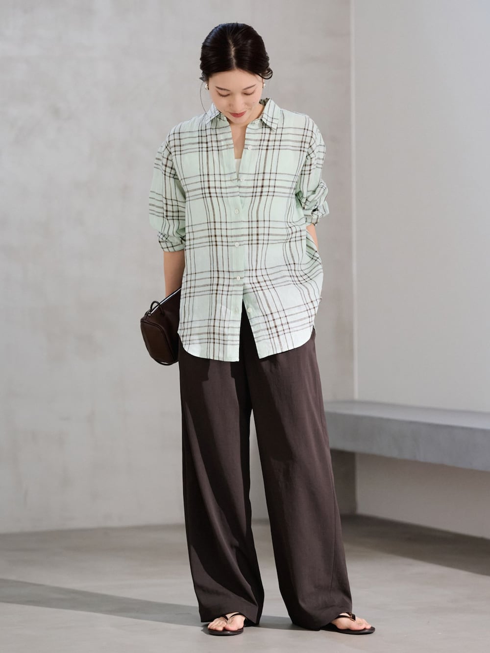 身長:165cm/体型:普通/普段サイズ:36・38 FRAMeWORKの定番アイテム、リネンシャツが登場。 ネックの後ろには"FRAMeWORK"の刺繍を施し、特別感のある仕様に。 ご自宅で水洗いをされる場合は、脱水をゆるめにかけてシワを伸ばしていただき、ノーアイロンでラフに着ていただくことをおすすめします。