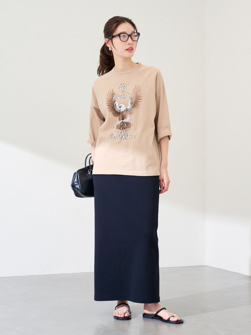 ゆるっとしたシルエットのラグランスリーブで一枚で着映えるシルエット。 一枚ではもちろん、ジャケットのインナーづかいにもおすすめ。 ロングシーズン着まわせる一着です。