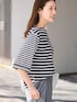 ベーシックなボーダー生地に特殊な製品洗いを施し、表面のフェード感でヴィンテージライクな表情を引き出した一枚。 程よくこなれた質感がスタイリングに自然な抜け感をプラス。 後ろ裾に入れたタックが立体的なシルエットを生み、シンプルな中に程よいデザイン性を加えています。 ----------------------- DRAGON B.WEAVE SMALL 品番:26092230006210 ※今後販売予定 -----------------------