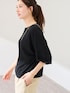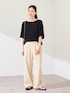 18ゲージ編みにより薄手ながらも透け感が少なく、夏場でも一枚で安心して着られます。 Tシャツのように気軽に使えるプルオーバータイプで、デイリーに活躍。 ワンショルダー風に着こなすことで、女性らしい抜け感のあるスタイリングも楽しめます。