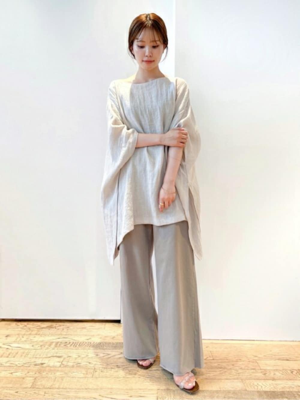 Poncho ブラウス お問い合わせ多数のポンチョ。 麻100%のため、涼しげな印象で長く使えるアイテムです。 年齢:20代前半 身長:156cm 体型:普通 普段サイズ:34,36 着用サイズ:FREE カラー診断:イエベ春 骨格:ナチュラル サイズ感 オーバーサイズです。首周りも少し落として着てもおすすめです◎ 布地/着心地 麻素材ですが柔らかくて軽いです。