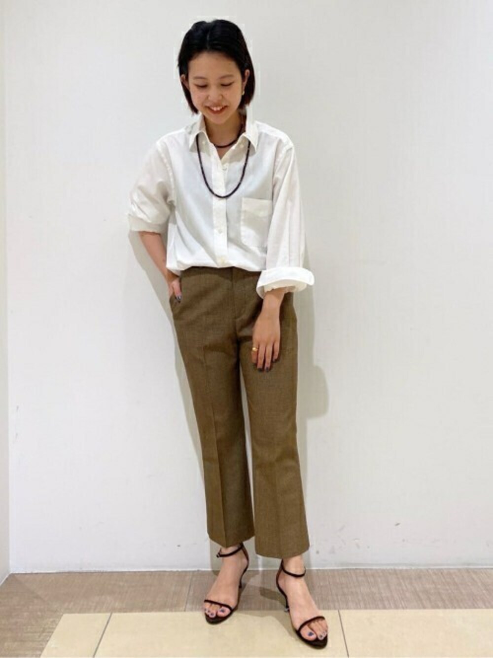 TRADクロップドパンツ 年齢:20代 身長:152センチ 体型:普通 普段のサイズ:Sサイズ着用サイズ:フリーサイズ パーソナルカラー:イエベ秋 骨格:ストレート サイズ感:ややスリムのサイズ感です。 素材感:ウール素材でしっかりとした生地感です。 着心地:足首が見えて女性らしさがでます。