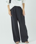 【ウェザータックワイドパンツ◆】 身長:166cm/体型:細身/普段サイズ:S、M/着用サイズ:38/イエベ春/ウェーブ サイズ感:ヒップまわりは程よく沿い、すっきり着て頂けます。 素材感:程よくシャリ感がある素材です。 着心地:リラックス感のあるアイテムは、シンプルなので幅広いスタイリングをお楽しみ頂けます。