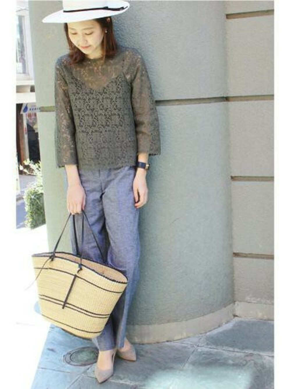 シックなレースのブラウスに小物使いが春らしい。 MAISON BOINETのブレスはヘビロテアイテム★