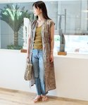 大人っぽく着こなせるペイズリー柄 ワンピースですが、前を開けて羽織りとして着用。リゾートシーンでの気分を上げてくれるスタイリングです。