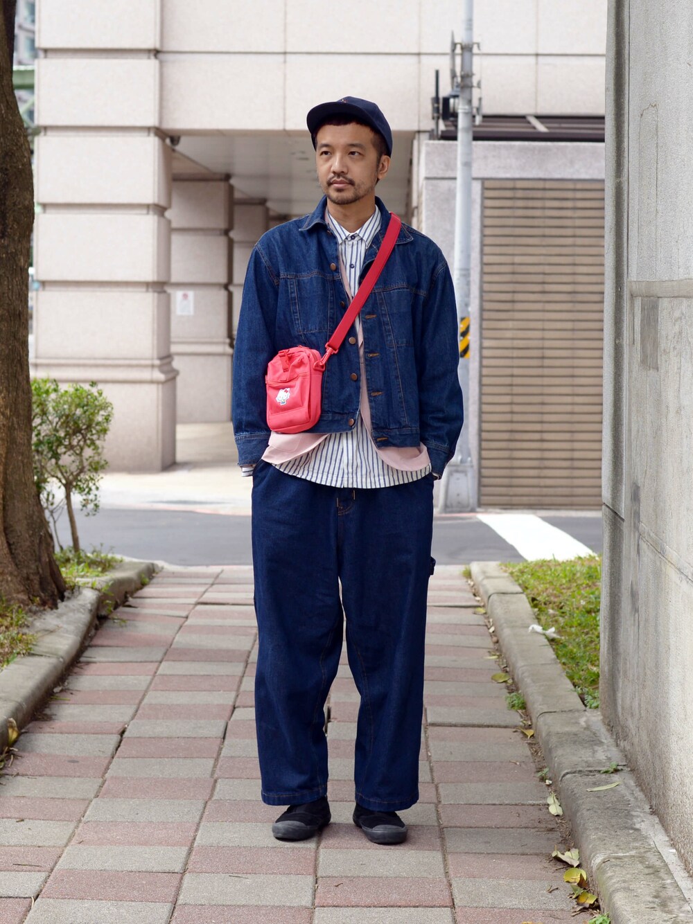 丹寧同材質 層次搭配 全身原色丹寧,加上一個紅色小包,增加趣味活力。 帽子:Hello Kitty x plain-me 小吃棒球帽 外搭:COP 2018年款式 內搭:COP 2019SS款式 褲子:COP 丹寧畫家寬褲 鞋子/襪子:UNIVERDAL PRODUCTS 包包:Hello Kitty x plain-me 帥哥手旅行小包 手錶/配件:N/A IG:instagram.com/plainakko