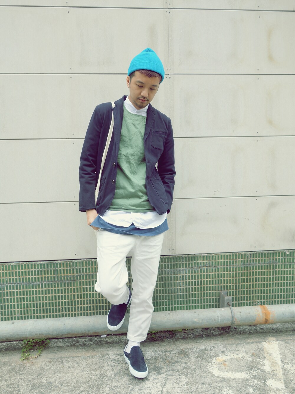 寒流來了,所以多了一些搭配層次 內搭長T+長版襯衫+背心 三種顏色與長短的混搭 中心以白色做主軸,外套與鞋子再和內搭的藍色長T搭配 就不會混亂 白色,春天很重要啊!
