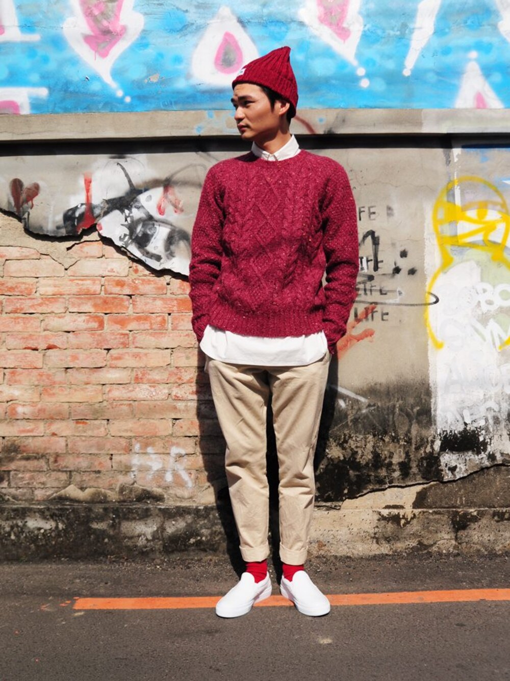 以紅色為主軸的搭配最適合用來表示年底受到紅色炸彈無情轟炸的心情。