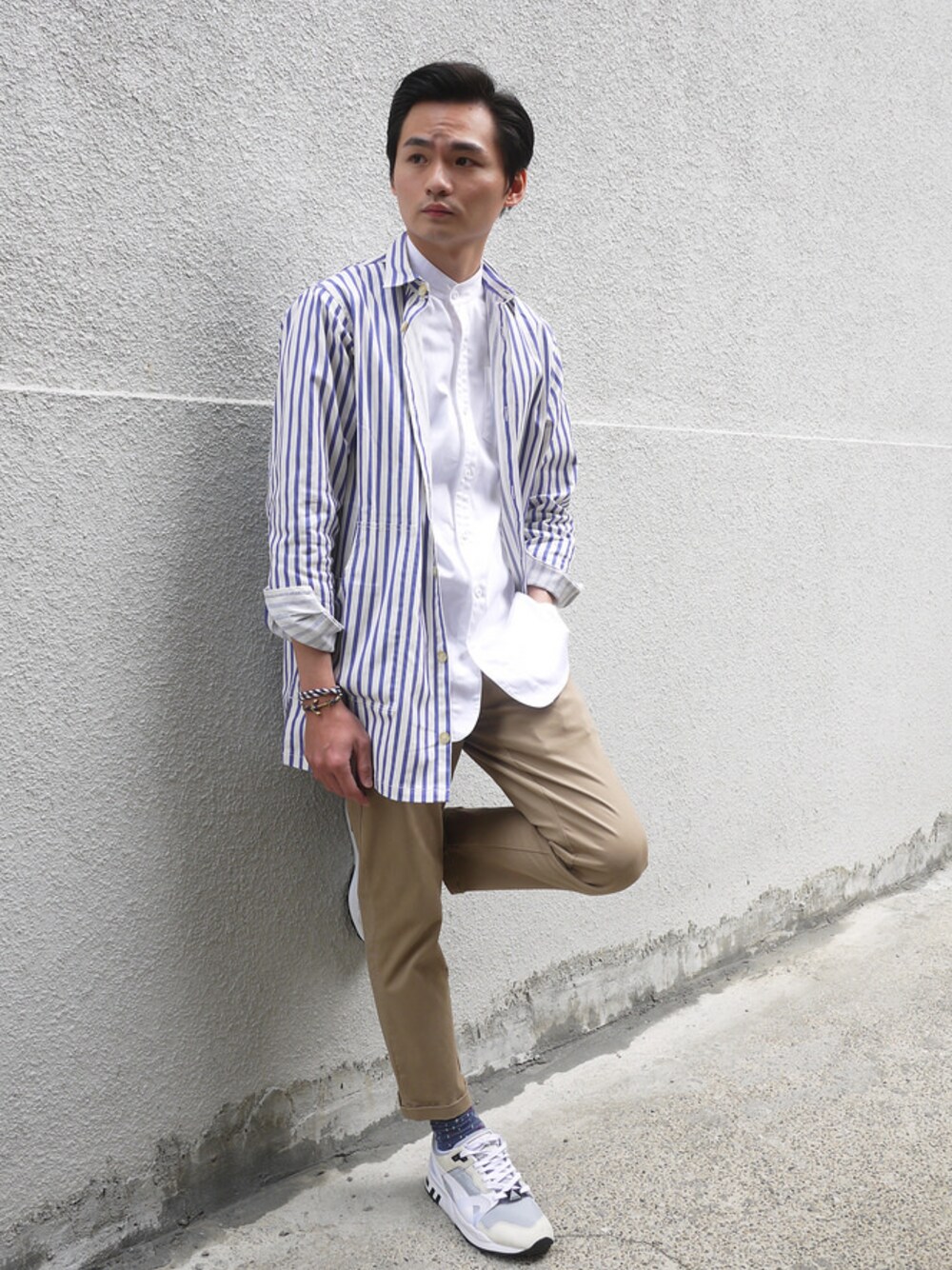 隨著氣溫提升、春季的到來,身上單品的厚薄度與顏色就相對的很重要。 我選擇以白色打底,頭髮梳起來,營造俐落清爽的感覺,卡其褲也是我熱愛的顏色,因為它除了黃色之外,任何顏色都能搭配,也是春夏清爽的代表褲款之一。 鞋子則是近期火紅的Puma XT2,因為它的科技感可以讓我顯得更有精神,最後再外搭條紋襯衫式外套,直接成為全身的重點。