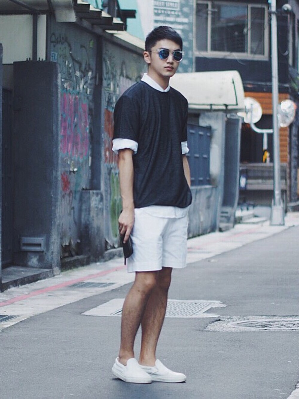 外罩一件網眼t-shirt,既不會熱又能增加視覺分量,在這種難以搭配的季節算是還不錯的單品。