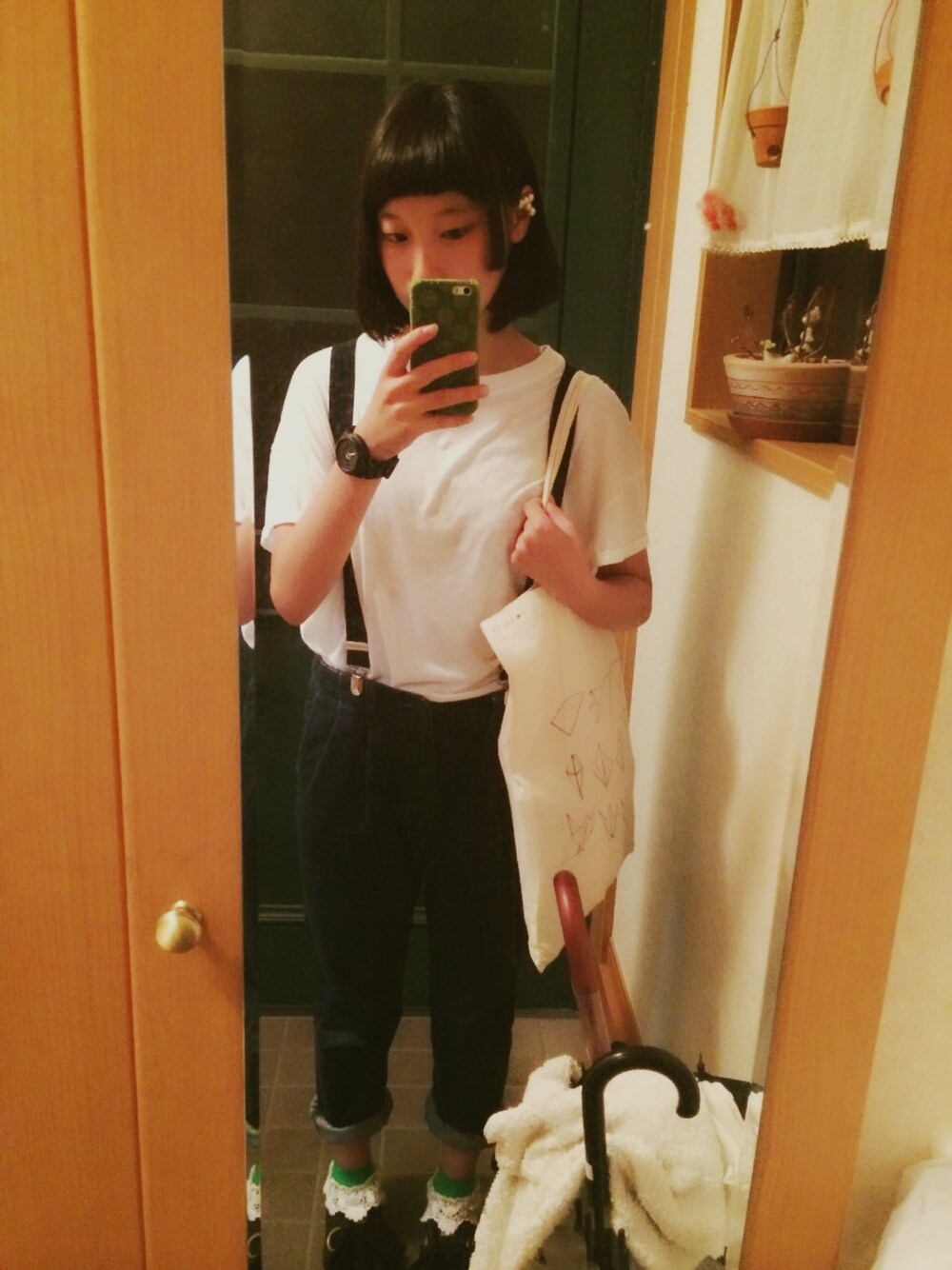 トップス▷ZARA デニム▷haco. サスペンダー▷WEGO くつした▷? イヤーカフ▷aoki yuri トートバッグ▷學展にて