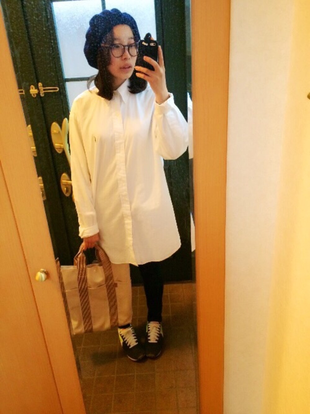 ベレー帽▷used メガネ▷Loyd 白シャツ▷used スキニー▷INDEX 靴▷NIKE 自分の中ではキレイめのコーデです笑 バッグはお父さんお母さんのを勝手に 借りちゃいます( ˆᴘˆ ) 見えないけれど、腕時計もHERMESで お父さんがお下がりでくれました!
