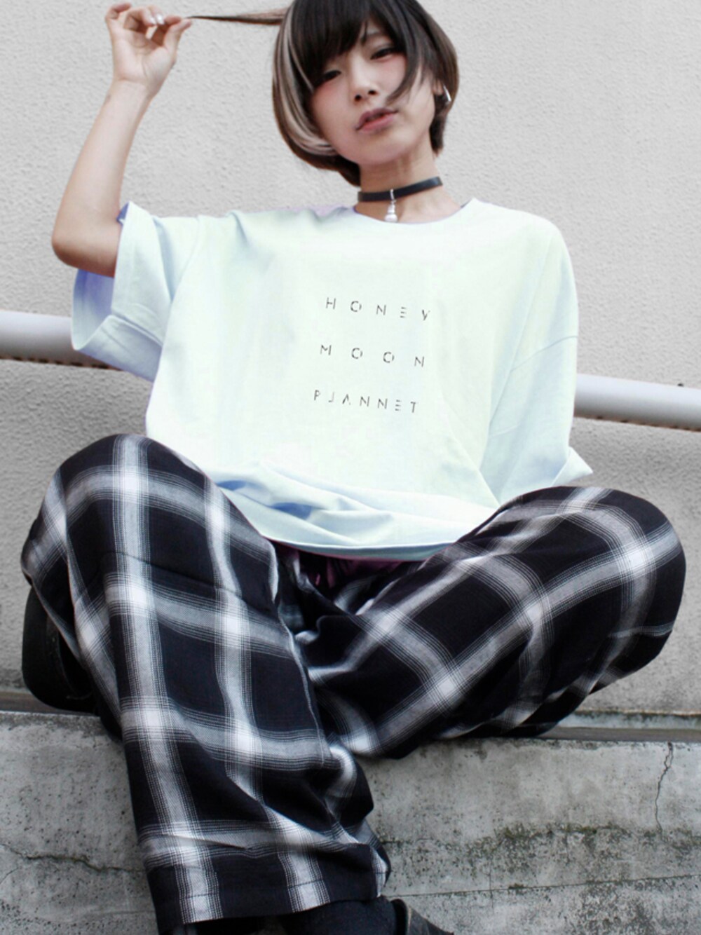 Let LOOSE -HMP S/S TEE(LIGHT BLUE) unclod LIGHT BULB CHOKER PARADOX :CHECK PANTS (BLACK-CHECK)
