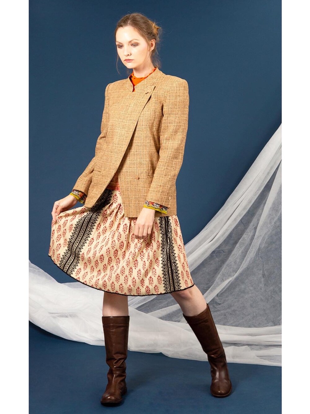 PLAYFULのジャケット/アウター「チェックツイードスタンドカラーダブルジャケット ¥37,213」を使ったコーディネート