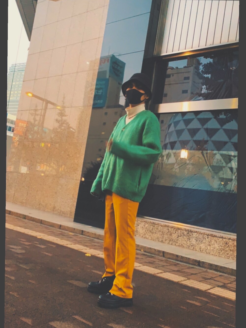 久しぶりに投稿なう。友達のマミーと妹ちゃんに褒められたコーデ✨デートの時はこういうの着ていきたいよね。まーあいてはいませんけどさ😂 グリーン×イエローって結構あうんよな。見てくれた方ありがとう。おすすめなんでぜひ試して見てください。