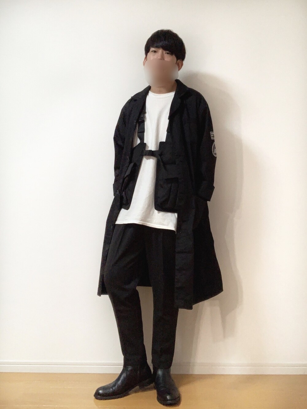 S'YTEのショップコートを購入したのでシンプルにまとめました。 中に黒のミリタリーベストを着てます。