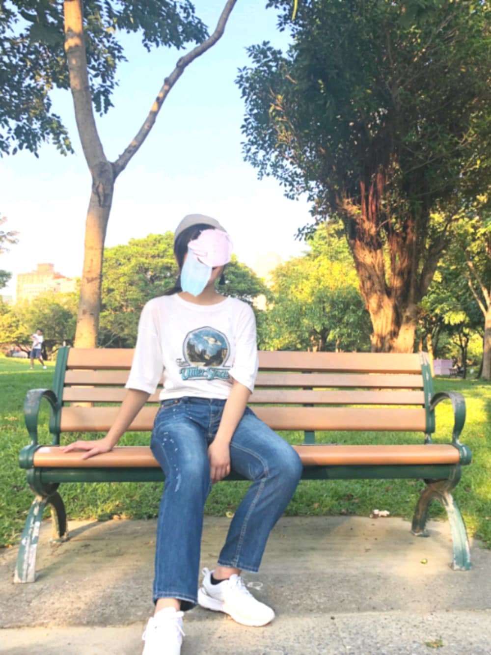 ホワイト系のTシャツ/カットソー、ホワイト系のスニーカーを着用したレディースの秋コーディネートの1枚目の写真