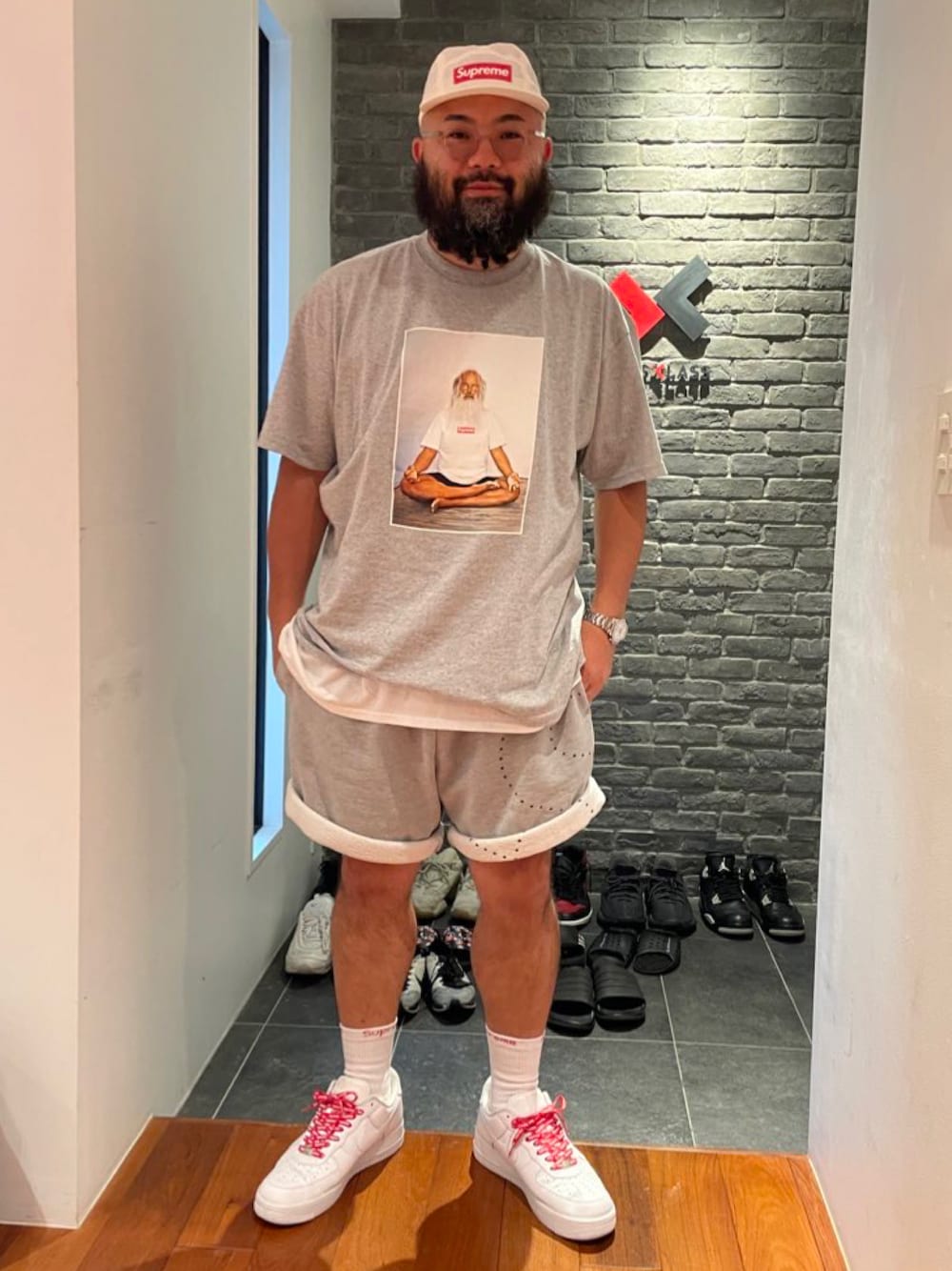 全身グレー&アブナイ人のプリント でもアブナイ人はヒップホップ界の偉人です Supremeのセンスばやい
