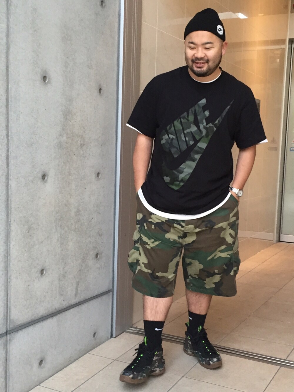 迷彩コーデ。とにかく迷彩が大好き!ナイキも大好き!そんなコーデ。Tシャツはたしかハワイで購入したやつ。海外はTシャツの種類も豊富でナイキフリークには宝島やわ。 Tシャツ:ナイキ ショーツ:ロスコ スニーカー:フォームポジット キャップ:ナイキ