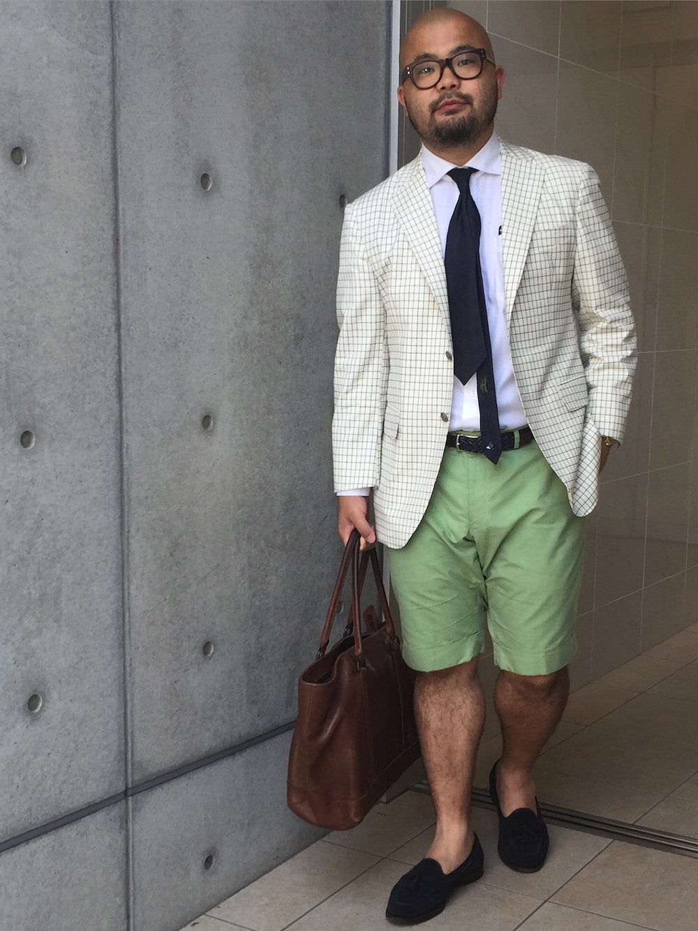 白ジャケが着たくて♬暑いからショーツでいたくて♬って自分の都合しか見てない仕事スタイル(笑)これでちゃんとアポ行くからね!最低限の気持ちってことで、いつもタイはしてます。こういう無駄なモノにこそ、こだわりたいな、と思ってる次第です。 ジャケット:麻布テーラー/azabu tailor シャツ、ショーツ:上記同様 靴:チャーチ/church's 時計:ブレゲ/breguet バッグ:エルエルビーン/LL.Bean