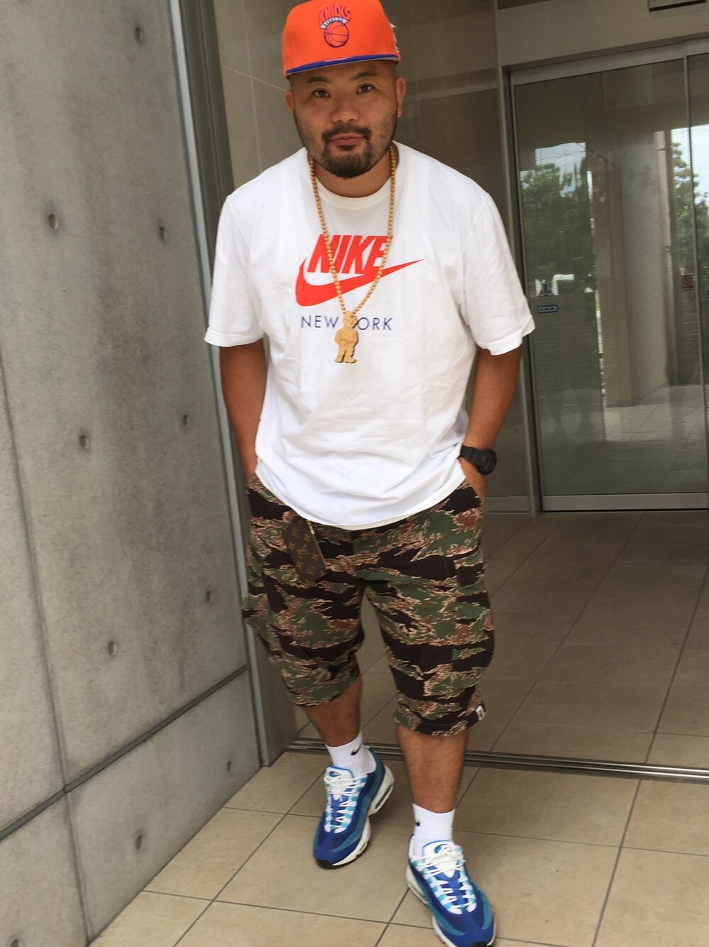 今日は違うミリタリーで!エイプのタイガーカモも良い感じだよね。迷彩って意外とオレンジとかブルーに合うんだな◎ まだまだ夏が続きますね。暑い暑い。まだまだショーツ×Tシャツなスタイルですな。ナイキ大好き♬