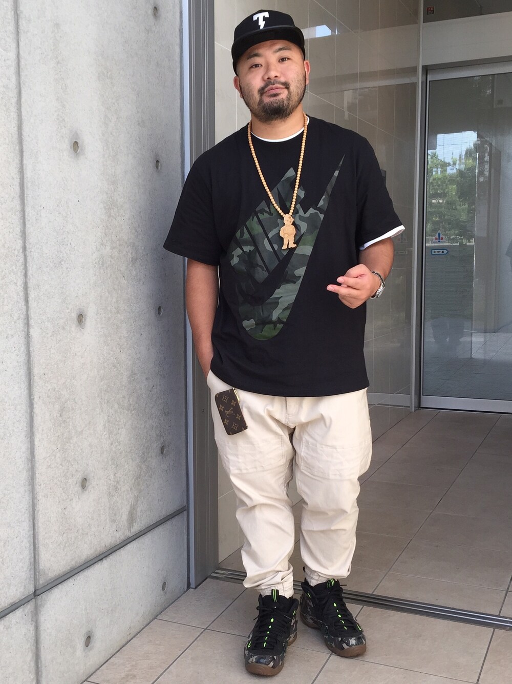 あ、、、今日もカモ柄やった(笑)どんだけ好きなんだよ、迷彩。ま、好きだからしゃあないか! ナイキのカモ柄コーデす。Tシャツもスニーカーもナイキでカモ柄。ポジットいいよね。TシャツはNYでかな、買ったの。日本にないからお気に入り。 でもパンツもキャップも安定のタックマで。ほんと、パンツは履き心地抜群だし、キャップは大人な僕にも大丈夫なレザーを取り入れたデザイン。まだまだ流行るのは先なのかな。